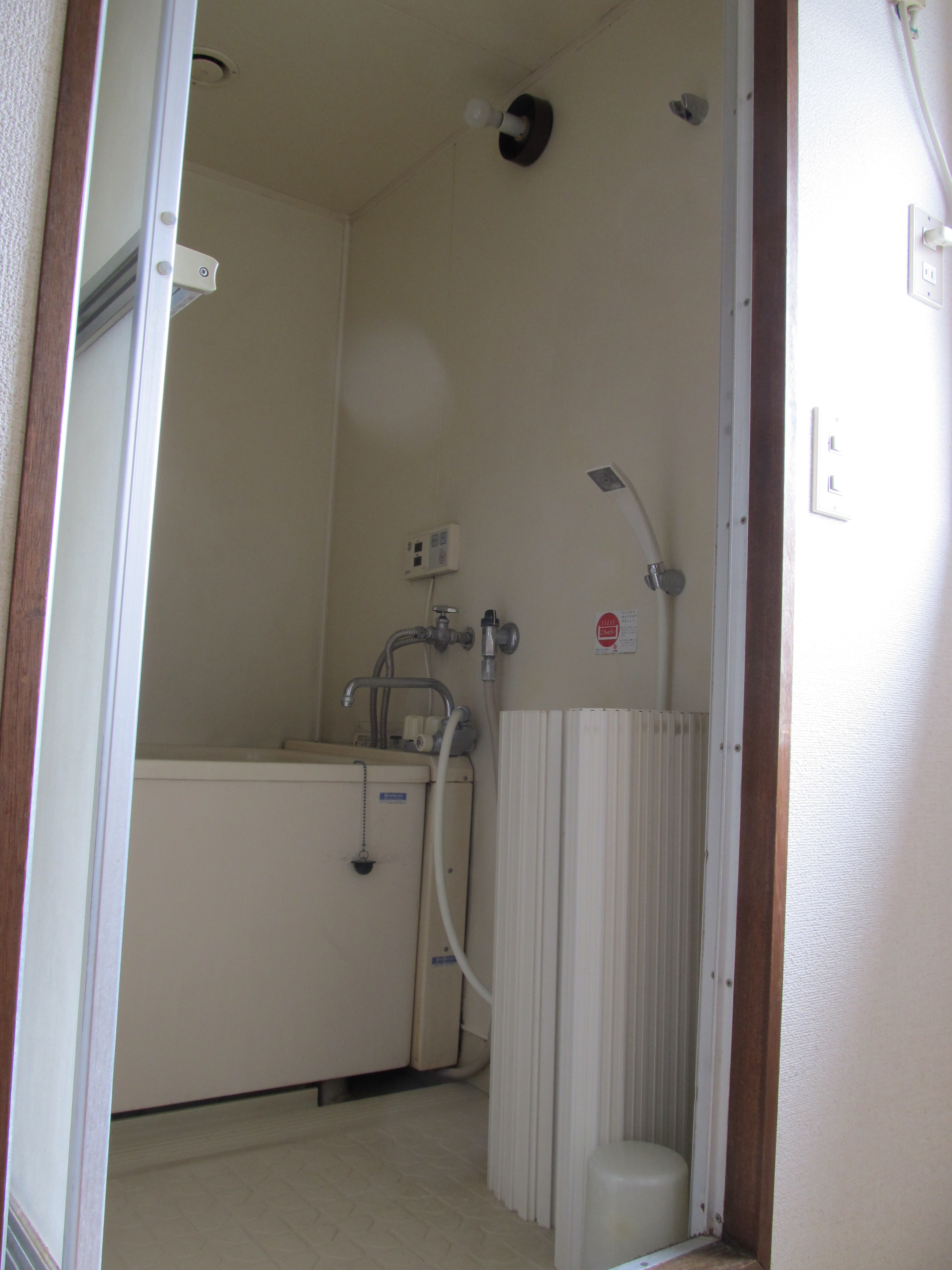 中から見るとこんな感じです。(基本的に浴槽横についています。脱着した状態になってます。)
