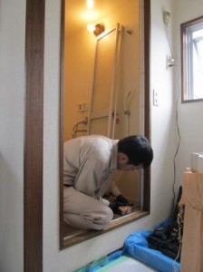 写真に載ってる職人さんは弊社でユニットバス工事をする際に