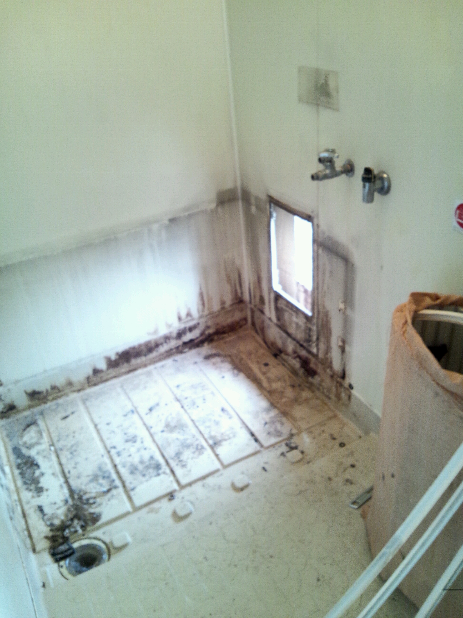 ユニットバスによって壊し方は違いますが、まずは入口扉から壊します。