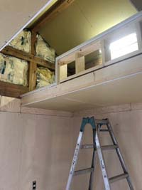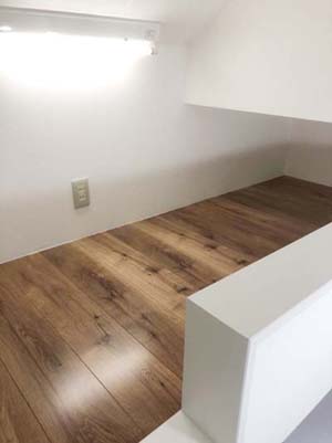 ロフトに床材を貼り、電気を設置。
