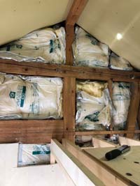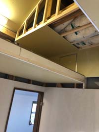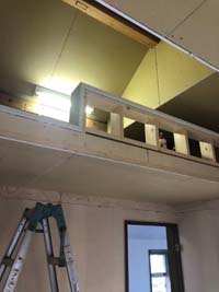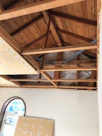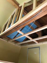 2階の天井を剥がし、屋根裏に断熱材を入れ、 ロフトの枠組みを組んでいきます。