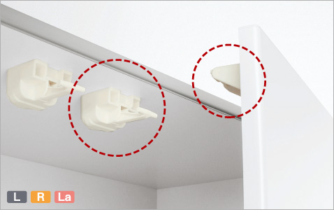 調べてみるとやはり、地震に備えて耐震ロックがついているパナソニックの吊戸棚を設置していました。