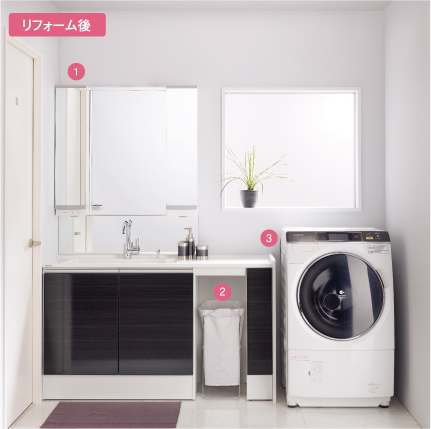 狭い洗面所でも、親子で一緒に使うことのできるスペースづくりができるのもリフォームならではです。