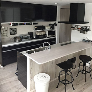 解除されても自粛が長かったため、私は今も『おうち時間』をどう快適に過ごすか考える日々です・・・。子どもの勉強スペースもどこが快適か模索し、キッチンカウンター前に棚を設置しリビングで集中できると思われるレイアウトにしました。