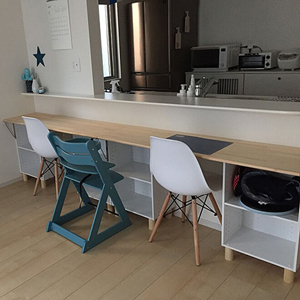 お子様の勉強机にもなるので便利です。小さなお子さまも、お母さんの顔を見ながら勉強できるので安心でしょう♪