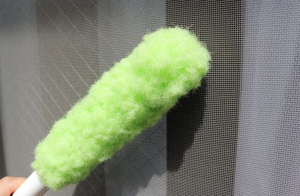 水に濡らしてから 軽く水気をきり、網戸をなでるだけでびっくりするほどキレイになります。