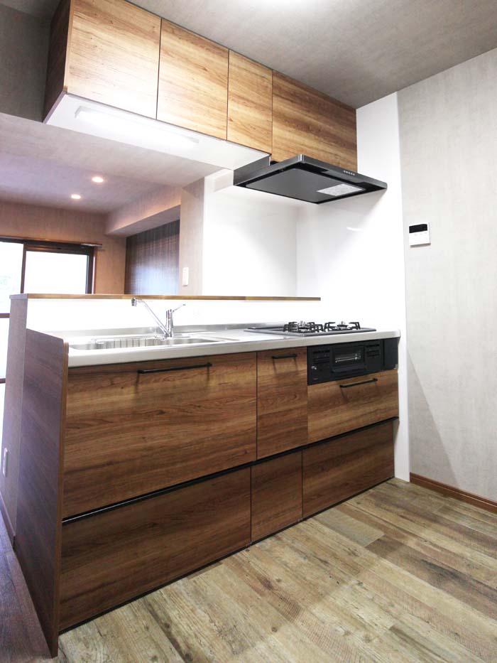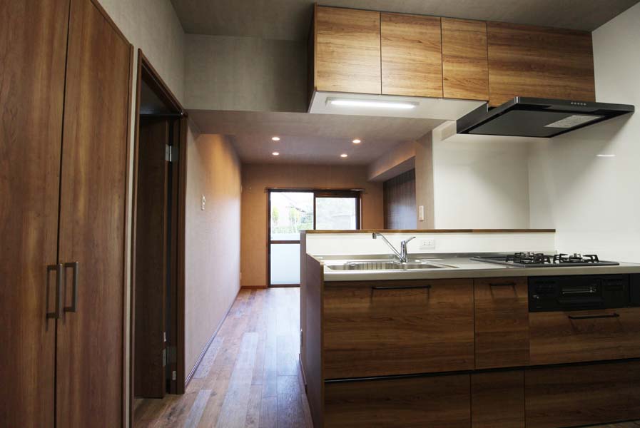 元々は独立していたキッチン空間を使い勝手のよい対面キッチンにしました。