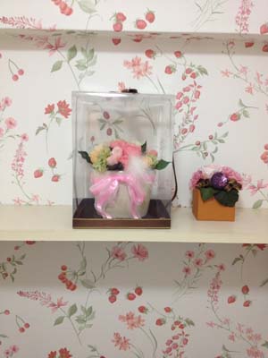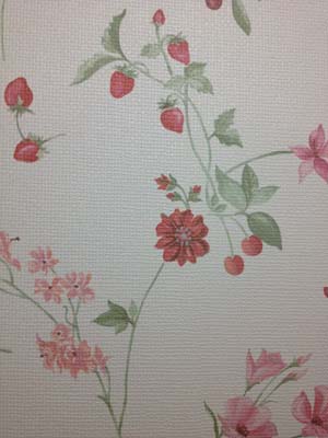 壁紙は、ピンクの花柄。色調も穏やかで、上品な柄の壁紙です。