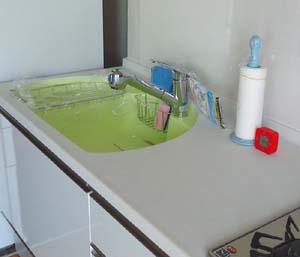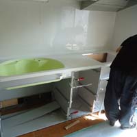 今回のポイントになるライムグリーンのシンクも取り付けます。