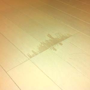 元のフローリングの色が分からないくらいの汚れです。フローリングの傷みとしては、軽い方です。