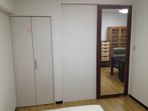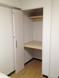 一間あった押入れを分割し、半分を隣接するキッチンの冷蔵庫を収納するスペースに。残り半間を折り戸のクローゼットにしました。
