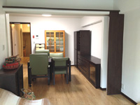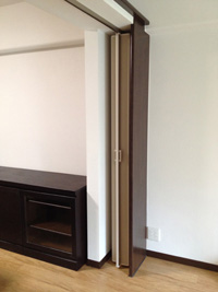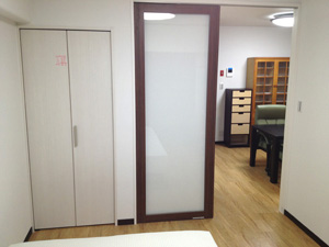 木調の間仕切り「アコウォール」を取り付け、空間を仕切って、独立したお部屋としても、お使いいただけます。