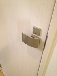 建具はダークブラウンをメインに、トイレ扉はアイボリーに取り替え。ドアノブは、片手でも開け閉めしやすいタイプのものを取り入れました。