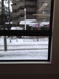 ↓近くの公園も一面雪景色。ハウスケアから眺めるバス通りもご覧の通り。