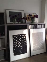 ラナンキュラスを飾った棚にはテレビやDVDデッキなどを収納しています。インテリアの中に無機質な家電が見えると、しっくりこないものです。大きなフレームを棚の前に飾って、テレビをさりげなく隠してしまうと、お花も映えるインテリアが作れますよ。