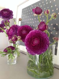 濃い紫のラナンキュラスは、おおぶりな花がボリューム感たっぷり、大人っぽい雰囲気を演出してくれます。