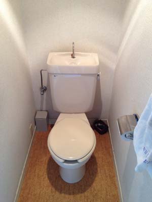 トイレは、TOTOピュアレストEX、ウォシュレットはアプリコット。床のクッションフロアも併せて、取り替えしました。