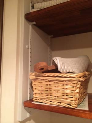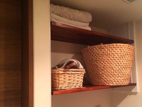 棚板の木目、色ともに、建具やバスケットにぴったりです。