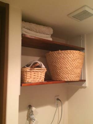 今回のご要望は、洗濯機上の収納棚の造作です。