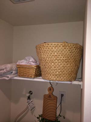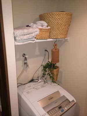 もともと空きスペースだった洗濯機上に、テンション式の棚を取りつけていたY様邸。