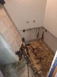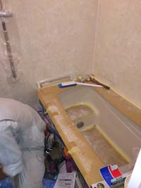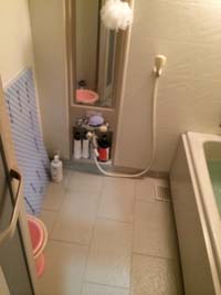 ↑こちらは、施工前と工事中の様子。バスルームのリフォームです。
