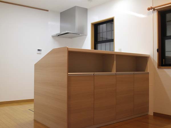 また、ダイニング側に背を向けることなく調理ができるので、家族とのコミニュケーションもとれるキッチンになりました。