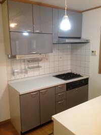 施工前のキッチンは、ガスコンロとシンクが向かい合ったⅡ型。