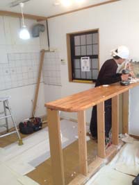 まずは、キッチンを解体して、下地調整と対面カウンターを造作します。