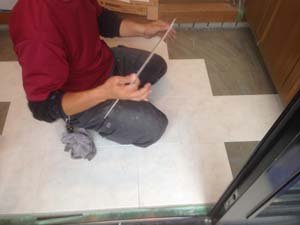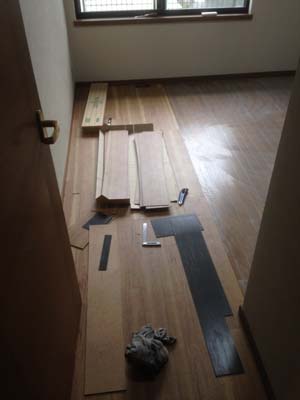 床リペア専門の職人は、既存の床の色や柄に合わせて、丁寧に補修しました。