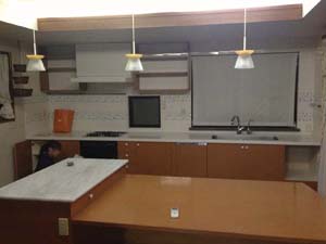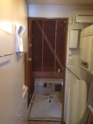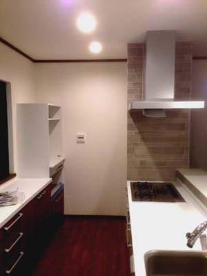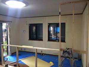 LDKにある既存のキッチンは取り壊し、洋室に新しくⅡ型のキッチンを作りました。施工前と工事中の様子です↓