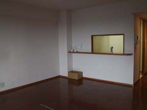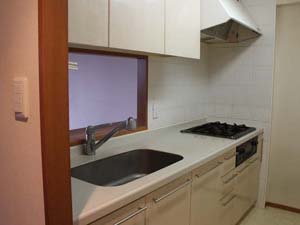 キッチンは、ダイニング側に向かって小窓が開いているセミクローズタイプのものでした。