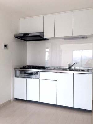 キッチンは、TOTOのミッテ。スタンダードな機能と使い勝手のよいキッチンです。パネルカラーはシンプルですっきりとした印象のホワイト。