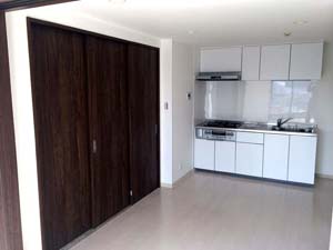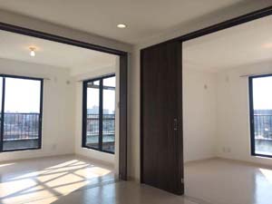 ダイニング・キッチンと2部屋の繋がりは、2つの間仕切り引き戸で。