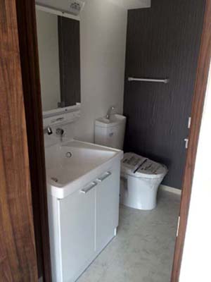 洗面所とトイレのスペースを共有して、ゆったりとした空間に。