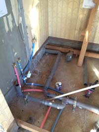 スケルトン状態にしてから、水廻りの設備の取付をおこないます。