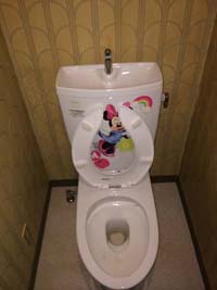 トイレの奥の壁面は、木調のダークブラウンのアクセントクロスを貼り、高級感をプラスしました。