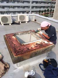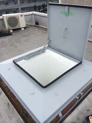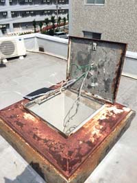 今日ご紹介するのは、ビル屋上の出入りハッチの塗装・シーリング工事です。