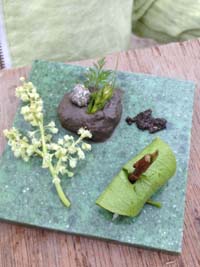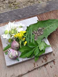 お花や葉っぱで作った料理、盛り付けも洒落たフランス料理のようで、なかなかで美味しそうです。