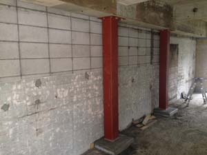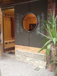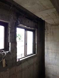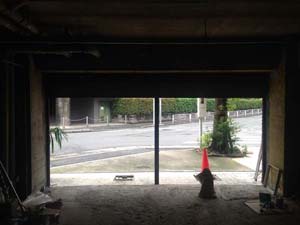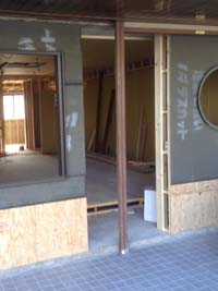 通りに面した入口も、窓と扉を入れる枠組みができてきました。