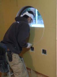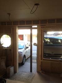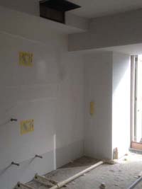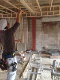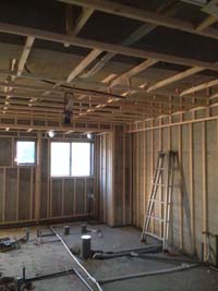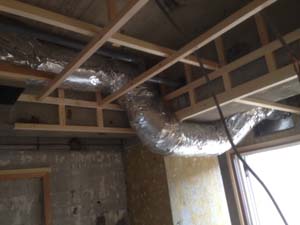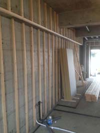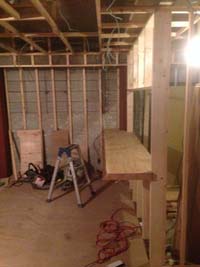 まずは枠組み作りから。配管スペースをとりながら、壁や天井の枠組みがどんどん作られていきます。
