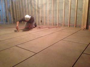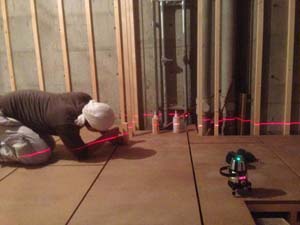 座敷スペースには置き床をして、その上に壁の枠組みをします。