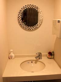 トイレと洗面台。モザイクタイルをモチーフにしたデザインです。