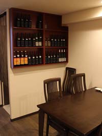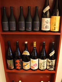 店内に入ると、棚には焼酎や日本酒の瓶がずらりと並んでいます。