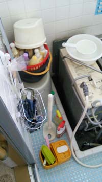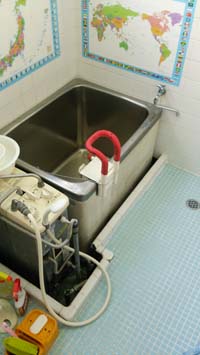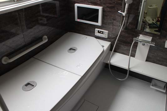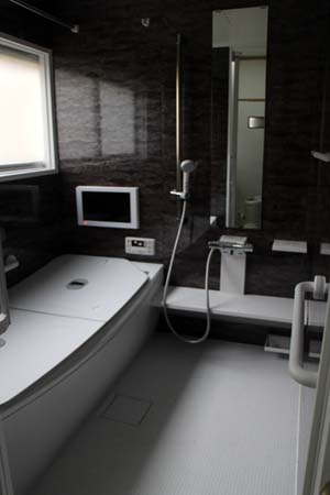 浴室内のスペースは十分にあるものの、深型の浴槽はご高齢のご両親がまたぐだけでもたいへです。湯沸かし器も浴室内にあるため、広いスペースの割には浴槽の狭さがもったいないくらいでした。