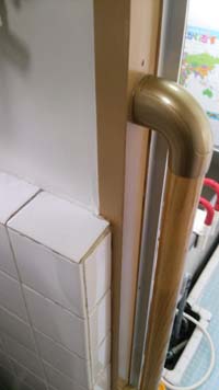 浴槽の横には大型手すりを設置。身体をしっかりと支えられるので、出入りも楽になります。