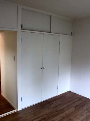 建具は既存枠を塗装し扉をオーダー建具に入替、8帖の収納と玄関収納はPanasonicのベリティスを取付ました。