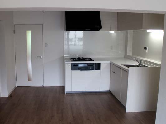 LDKを含む床は無垢調のフロアタイル、壁天井は白のクロスを貼り、明るい雰囲気にしました。