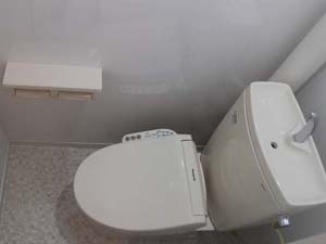 天井クロス貼り替え、床クッションフロアの貼り替え、壁は汚れを拭き取れるよう、パネルを貼りました。