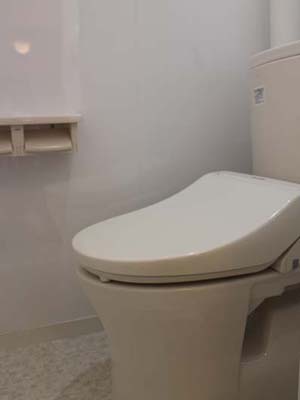 トイレは、TOTO ピュアレストQR。ウォシュレットは、コストを抑えてPanasonicビューティートワレを設置しました。