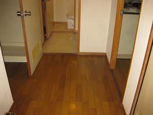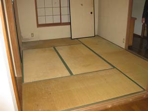 床はフロアタイルを貼り、和室は畳を入れ替えて塗装しました。